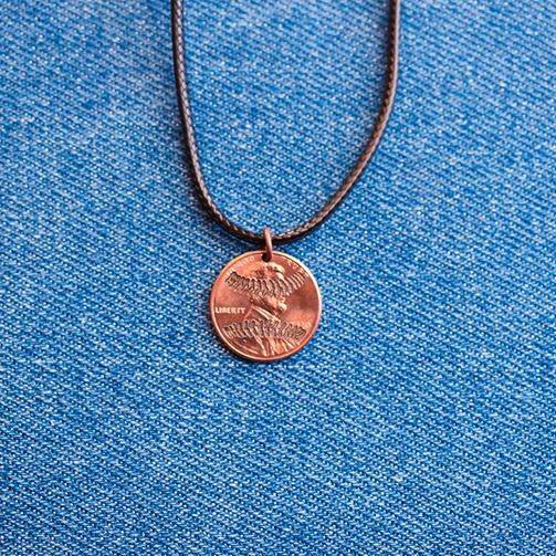 A handmade pendant with a fun engraved baseball penny. Cheer on the baseball star in your life, or just show your support of the game.