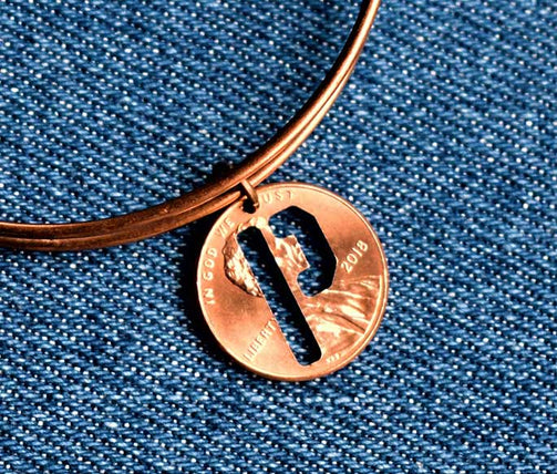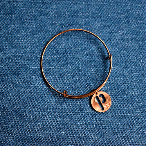 "P" for Pittsburgh! "P" for Pirates! "P" for your favorite Aunt Pauline or cousin Penny! A unique penny bangle with a bold cutout "P."
