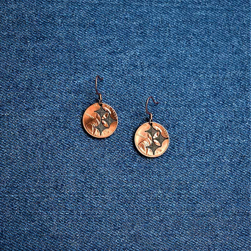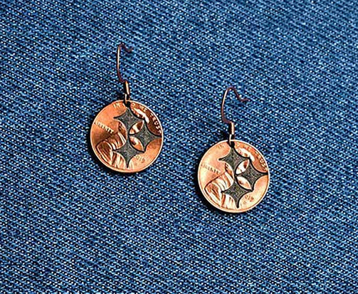 Our unique, handmade earrings with a pair of etched pennies proudly displaying the three stars of the Pittsburgh Steelers football team. HERE WE GO!